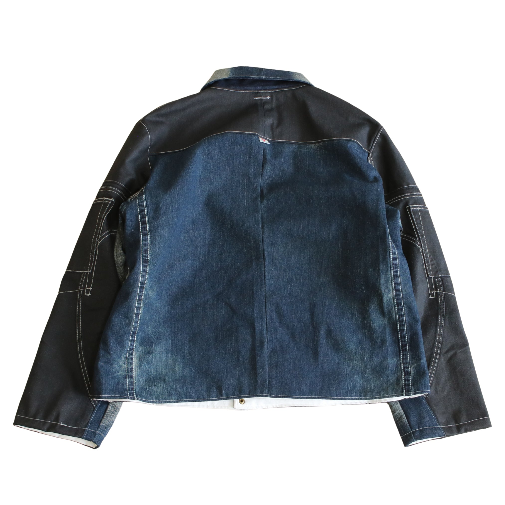 Part of the Akira Towel reworked collection, this jacket is crafted from an original pair of denim jeans. It retains the iconic contrast stitching, with four front pockets and additional sleeve pockets adding a utilitarian edge. Completed with a classic button fastening, it’s a one-off piece that brings new life to denim.
