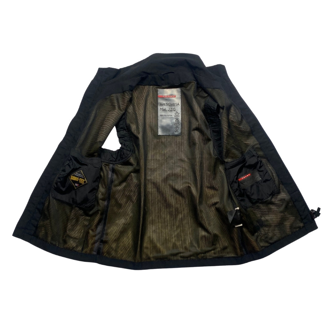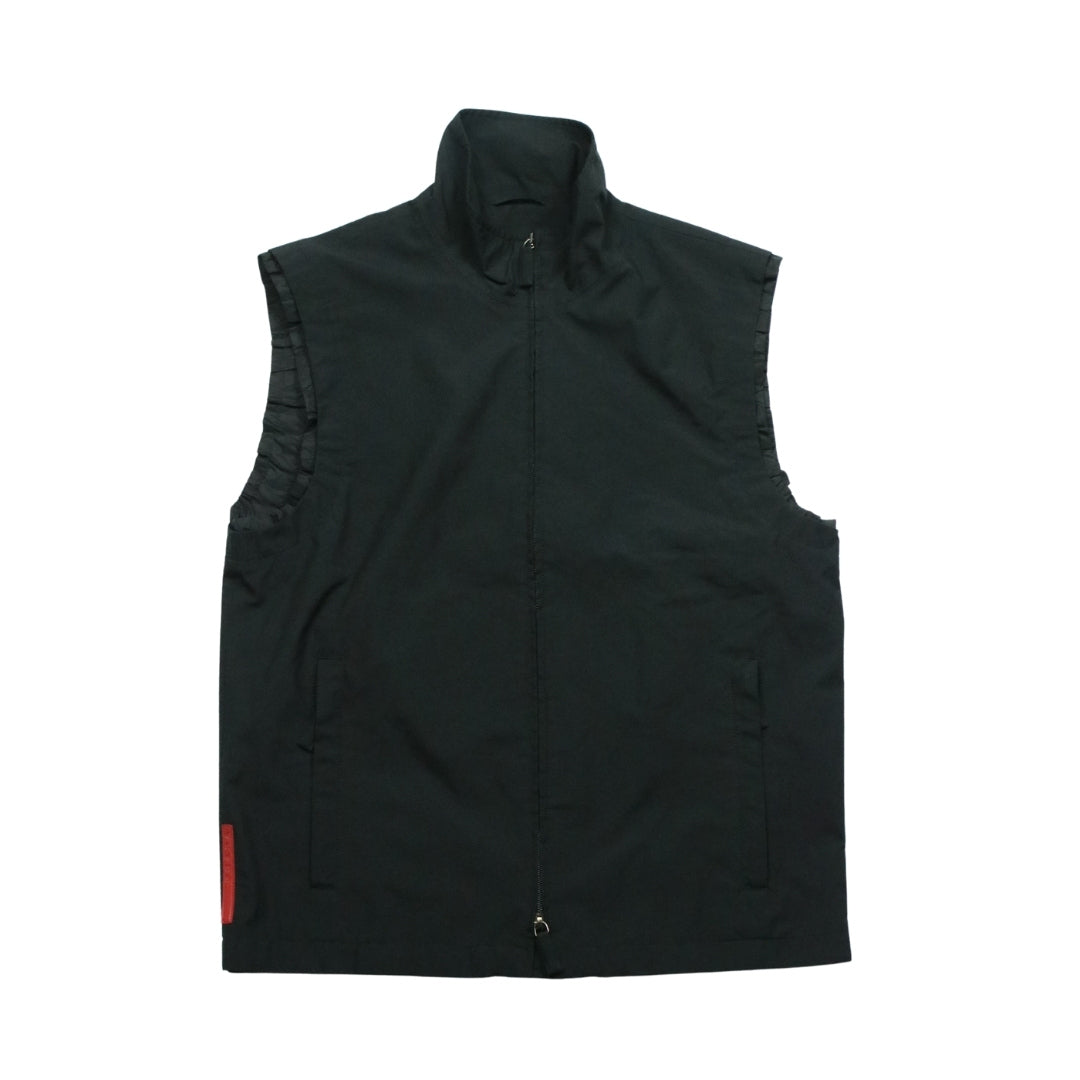 A sleek, technical layer from Prada Sport, this gilet combines performance-driven design with refined streetwear appeal. Lightweight and structured, it features signature red tab branding and a clean silhouette, making it a versatile piece for layering or standalone wear.